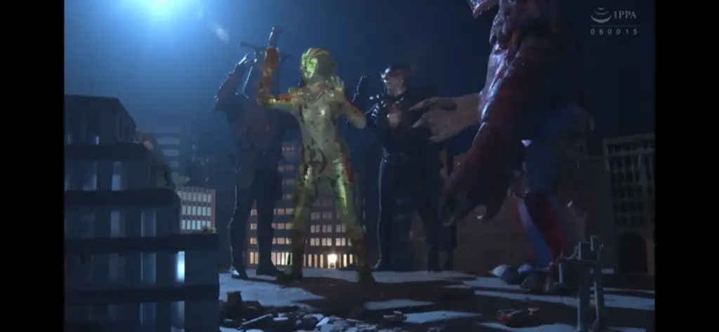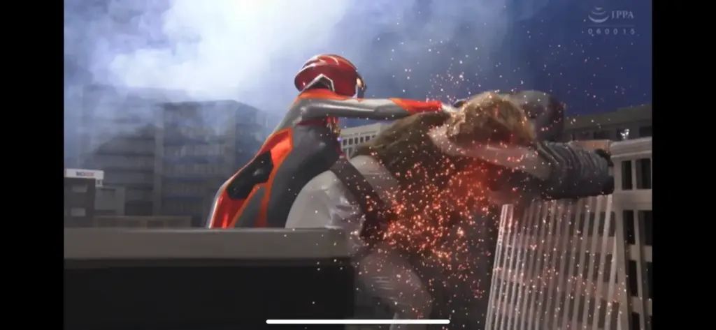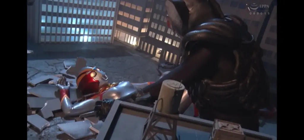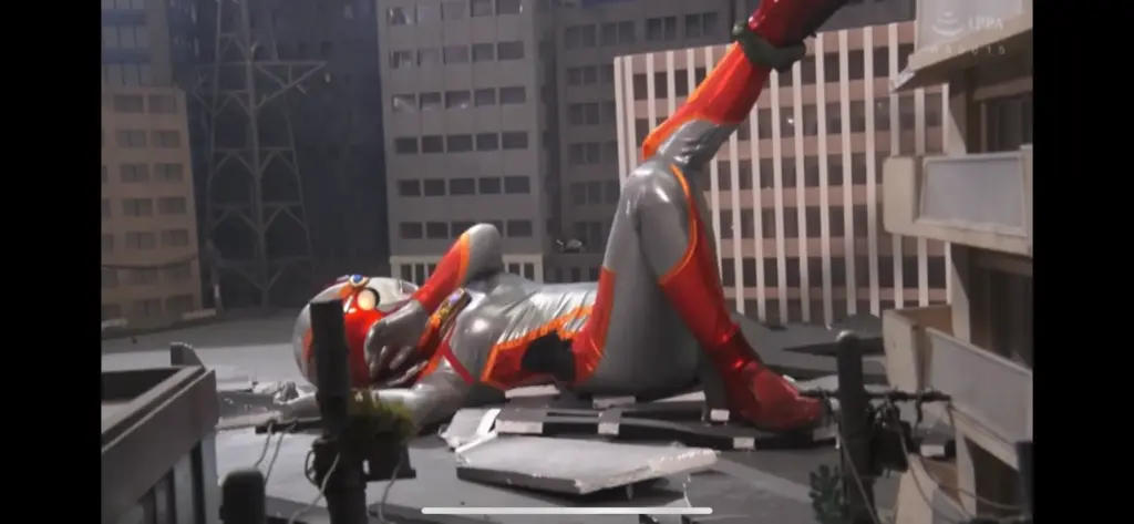 なんとか怪獣を倒すも、苦戦したためフラフラ。