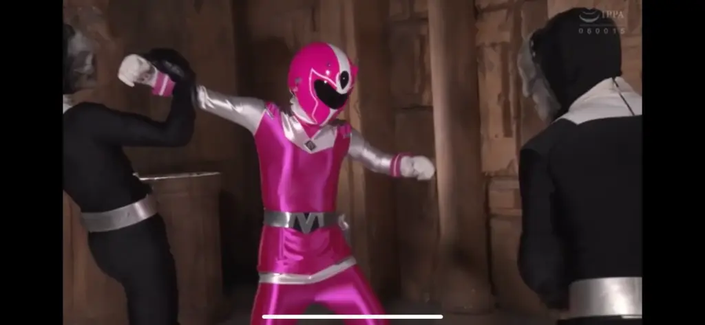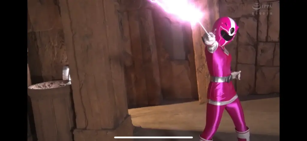 戦隊系のヒロインですが、戦隊スーツだけでなく前半は非変身姿でのエロが見られます。