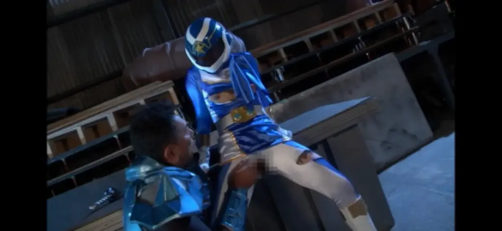最初は、内村りなさん演じる戦隊ブルーのエロシーンから!