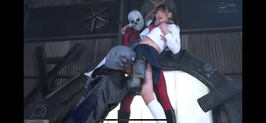 そして変身が解除され、制服姿になって捕まったところからエロシーン!!