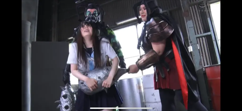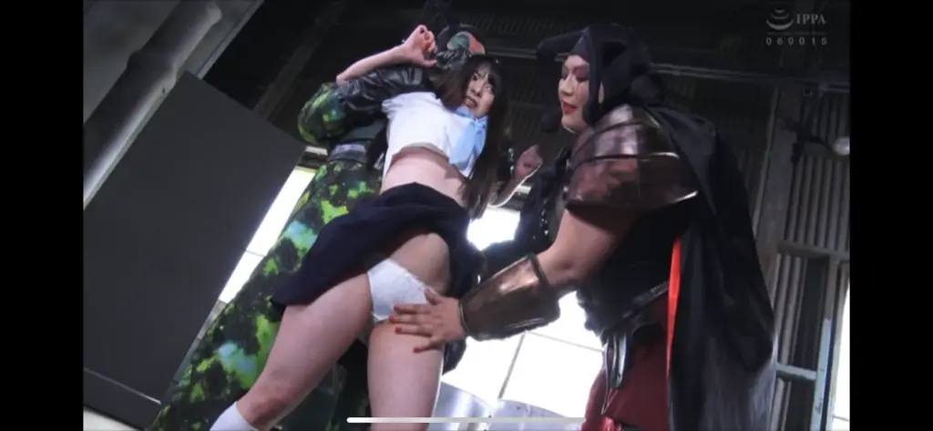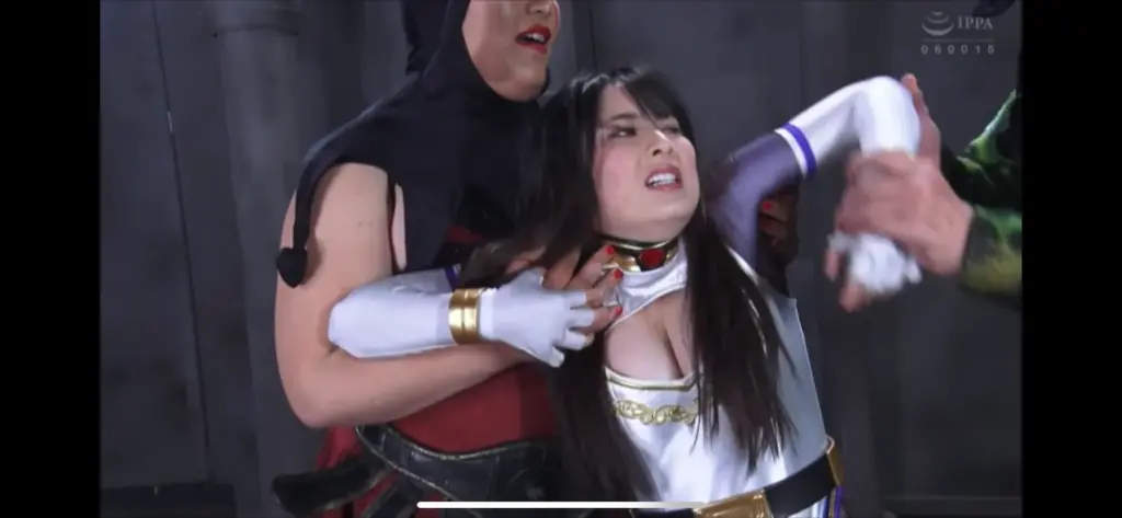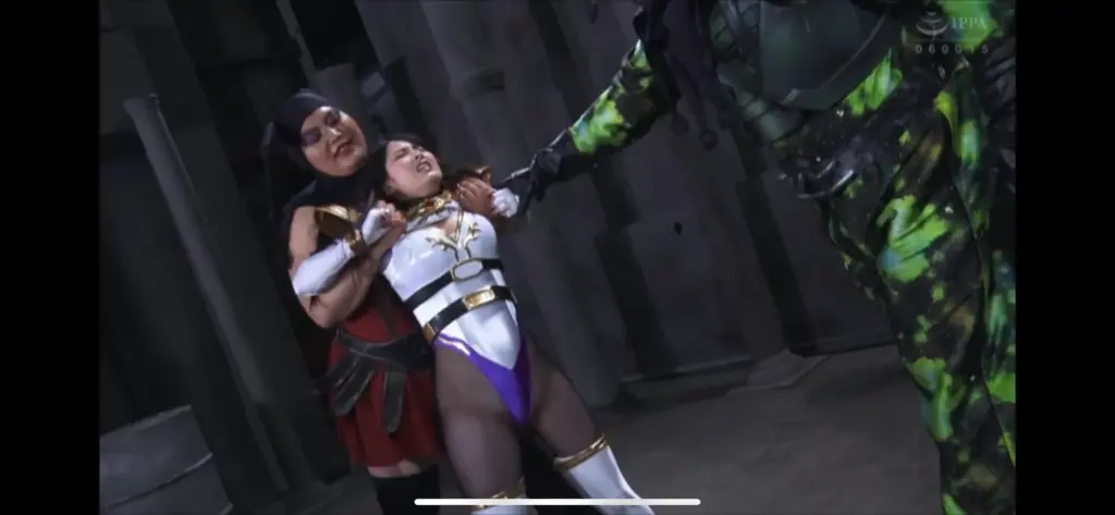 最初は、男女2人の敵に制服姿でいたぶられるシーンも。
