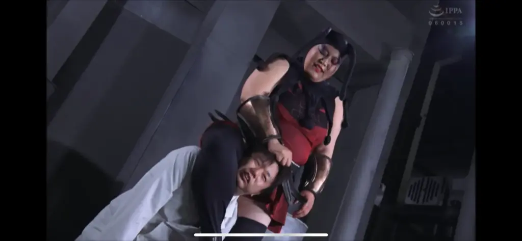 そして、持ち上げられた状態で首絞めや、締め上げられるなど、プロレス風の技も食らう!!