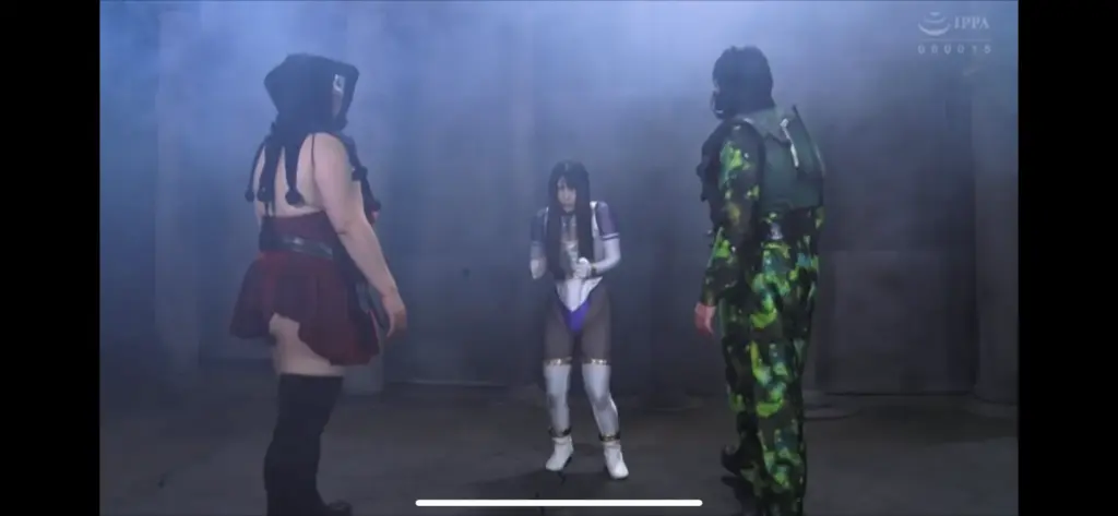 低身長の黒髪ロングのヒロインが、合計3人の敵に敗北する作品。低身長を活かした攻撃の演出や処女喪失、終盤の全裸シーンが見どころ。