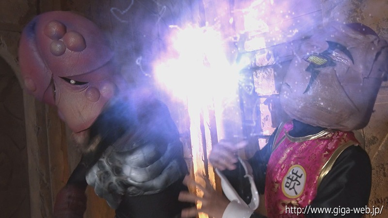 マスクオフ+戦隊衣装でやられるシーンがメインですが、強調された巨乳がたまらなくエロい